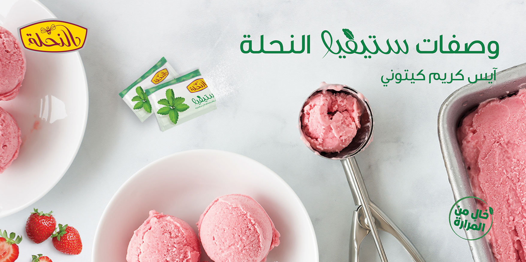 ice cream, Products, Recipes, SteviaKeto Ice Cream Posted by Alnahla - النحلة May 29, 2022 On May 29, 2022 0 One of the special Alnahla stevia recipes Keto Ice Cream:Ingredientsa cup of cold liquid cream1 tablespoon of Alnahla steviaTwo cups of frozen strawberriesHow to prepare: 01.Place the strawberries in a food processor and chop them into small pieces02.add cream and Alnahla stevia, Then blend the ingredients until they become a smooth mixture03.Put the ice cream in the freezer to freeze. When serving, garnish with fresh strawberriesA health and wellness!
